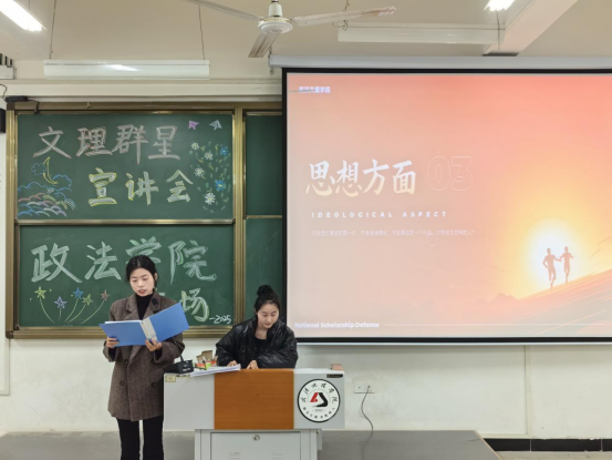 为给优秀员工提供平台分享自身经验和先进事迹,挖掘并传播政法优秀学子的动人故事与成功秘籍,充分发挥榜样力量,帮助大一新生明确目标方向,更好地在学习和生活中提升自我。太阳集团tcy8722分别于3月17日、3月27日、4月9日开展了3场2025年“文理群星”先进事迹宣讲会。