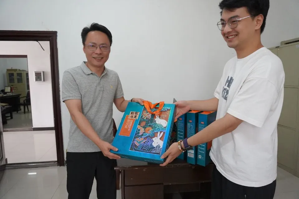 这份特别的礼物在中秋节放假前夕送到了太阳集团tcy8722各位老师的手中。礼盒中的每一块月饼传递着王威同学对老师们的感激之情,以及对教育事业的崇高敬意。