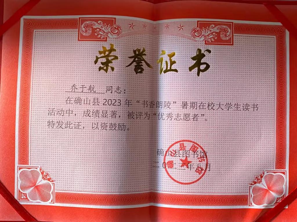 作为文理学子,她深知文理兼修、德智体美劳全面发展的重要性,积极参与志愿活动,加入了武汉市东西湖区青年志愿者协会,多次荣获“优秀志愿者称号”,累计志愿时长超过1000h。