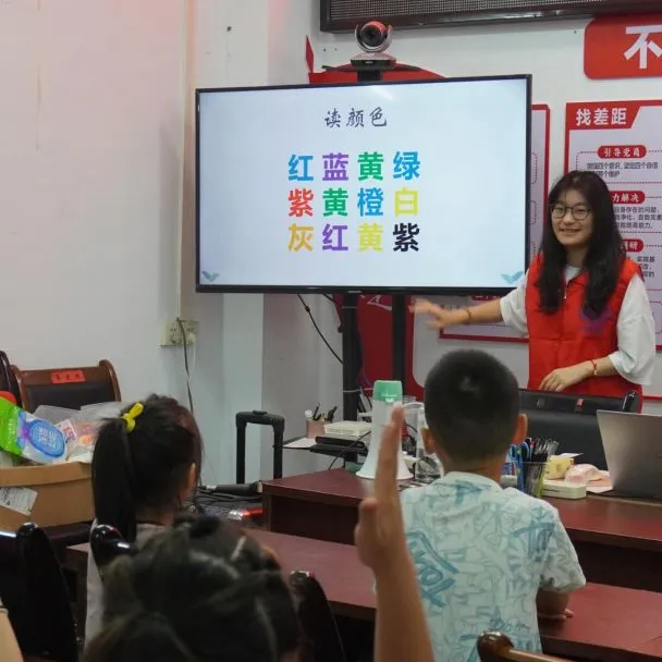 初次相识,小朋友们在志愿者小老师的带领下一一上台自我介绍,从姓名年龄,到唱歌跳舞的才艺展示,小朋友们踊跃展示着自己独特的风采,希望在新朋友和新老师面前留下深刻的一面。青春的生活永远充满惊喜与狂欢,为打破沉默,让温暖与欢乐在教室传递,一场欢快的破冰之旅顺利展开,随后志愿者小老师们带领同学们进行了“看字读色”、“数字传真”等破冰小游戏,让来到陌生环境的小朋友们互相熟悉、相互了解,为接下来的学习营造和谐有爱的环境。在大家的自我介绍和破冰小游戏中,小朋友们从最初的害羞腼腆到一起嬉笑玩闹,这一刻大家其乐融融,尽现暑期学堂风采。
