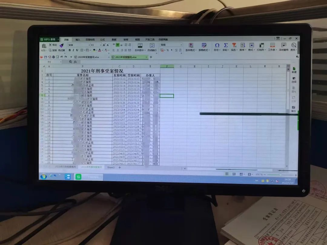 2、整理登记历年行政、刑事案件卷宗近400份。