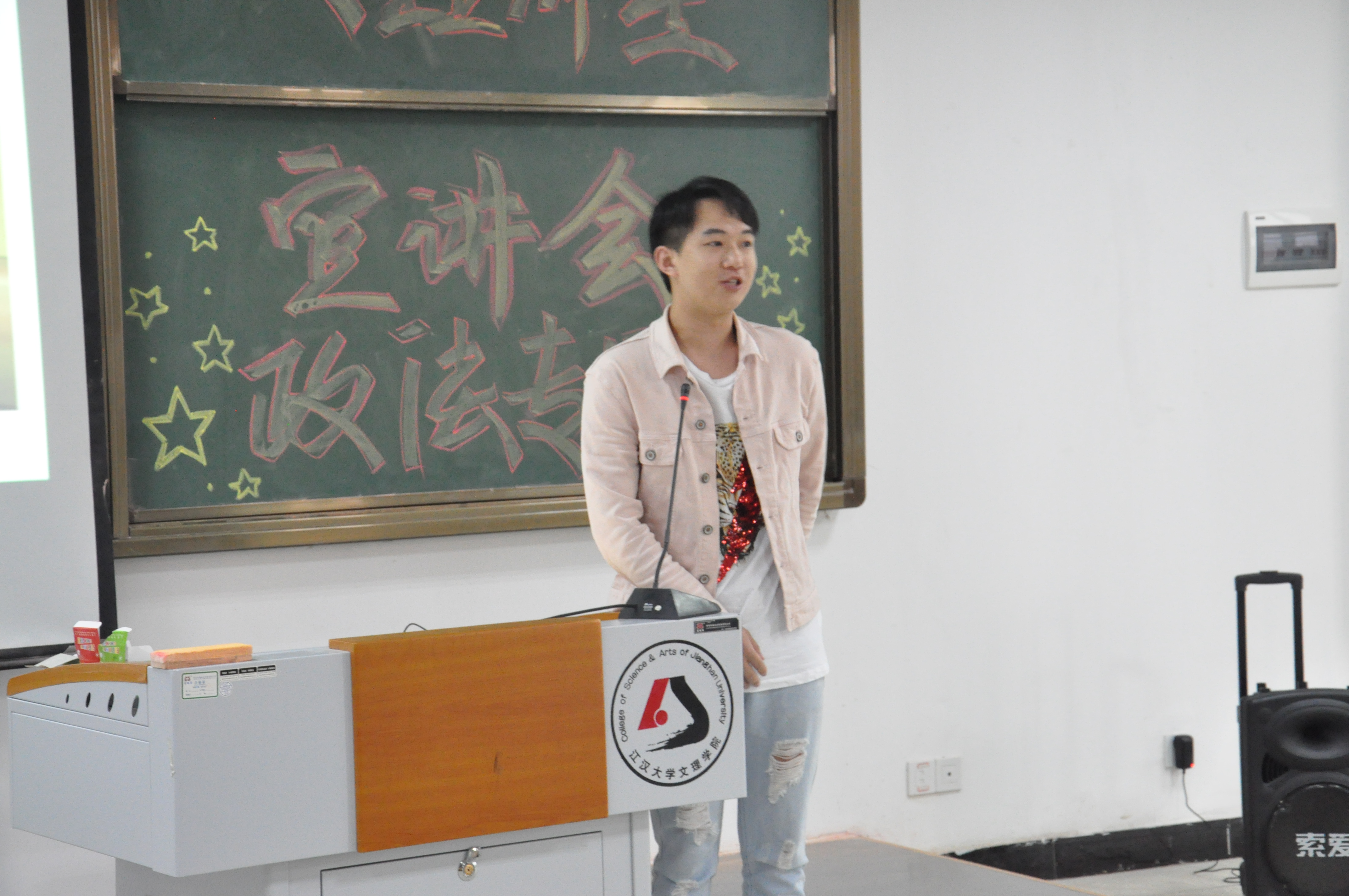 参加宣讲会的同学全部到场后,随着主持人对嘉宾以及宣讲人的简单介绍,“文理群星宣讲会”正式开始,首先上场演讲的是和润奖学金获得者喻迪。他作为一名大四的员工在大学四年里获得了许多荣誉——担任老员工艺术团团长并成为了百胜集团校园形象大使,同时还带队参加比赛取得了奖项。随着时间的流逝,喻迪学长的演讲已经结束,但我们仿佛沉浸在宣讲人慷慨激昂的演讲中。接下来便是现场提问环节,同学们纷纷踊跃发言,向宣讲人提问,面对这些问题,学长也都一一为我们解答,让我们豁然开朗。