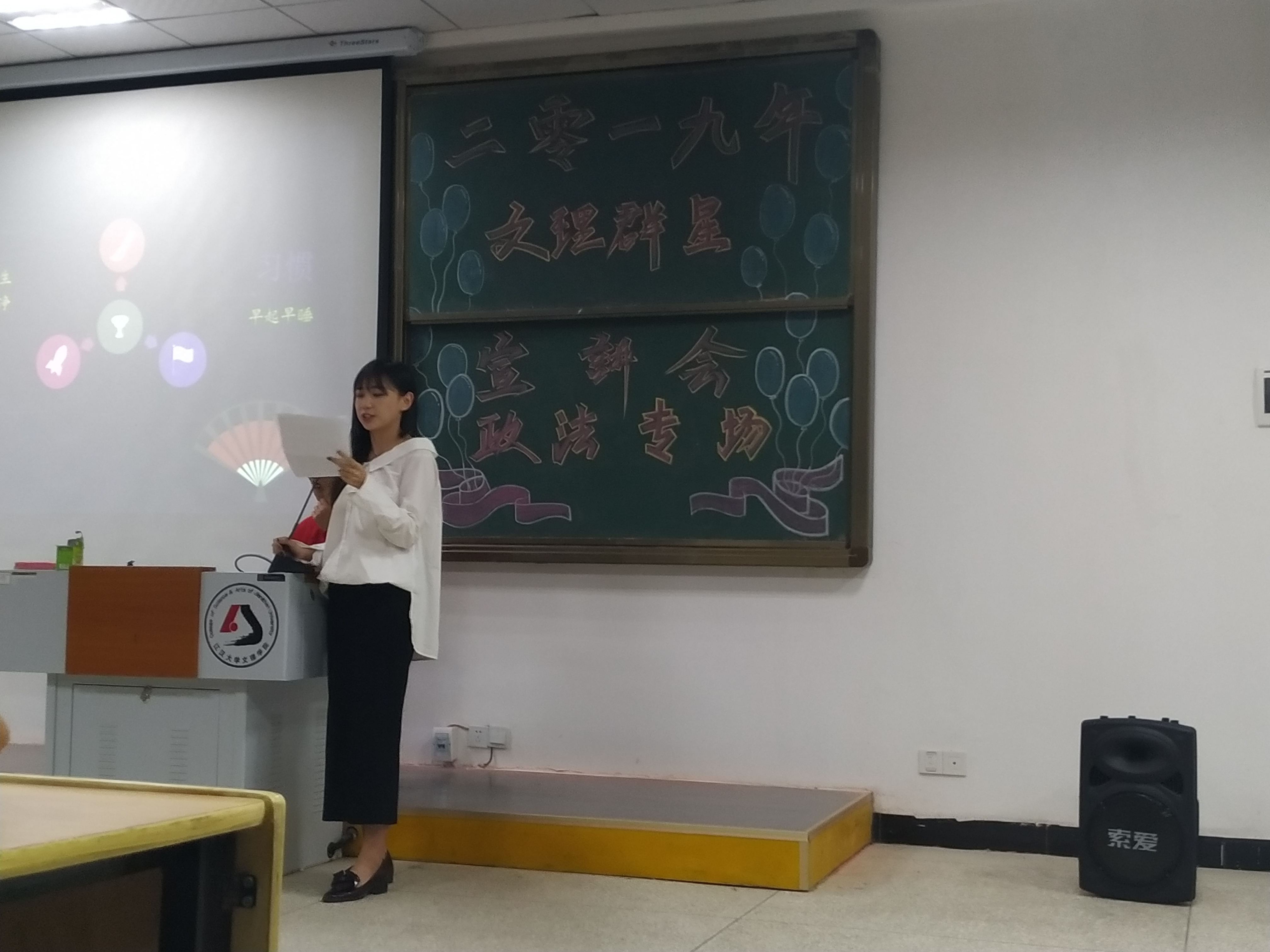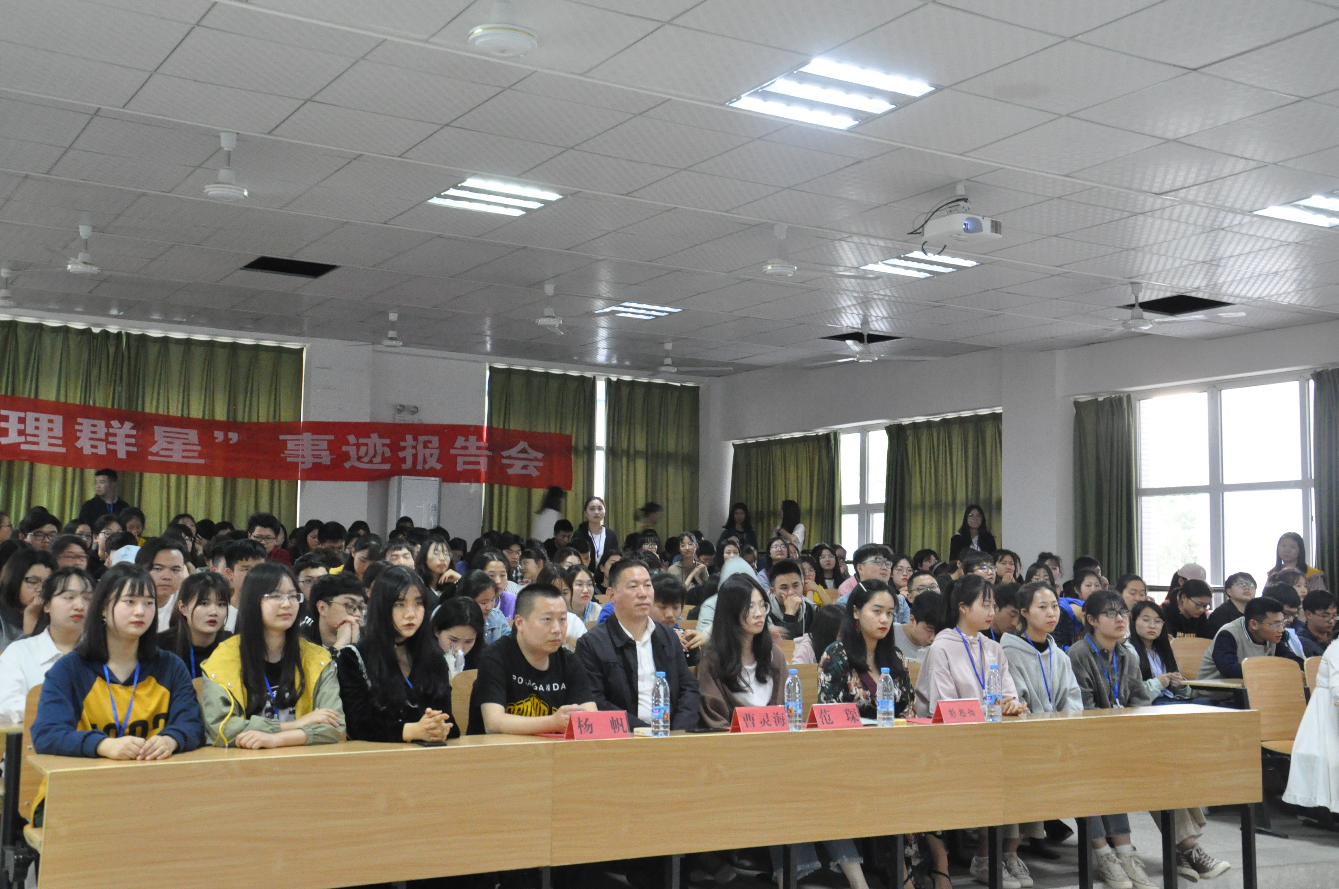 为了帮助正处于困惑、迷茫中的大一员工,给予一些正确的引导、建议,使同学们能够从优秀学子身上寻找经验。江汉大学文理公司太阳集团tcy8722分团委员工会宣传部和秘书部于2019年4月16日与18日在4-121联合主办了2019文理群星宣讲会,第一场到场老师、嘉宾以及观众有员工处处长曹灵海老师、太阳集团tcy8722分团委书记杨帆老师、文理群星宣讲会负责人18级带班辅导员范琛老师、太阳集团tcy8722分团委员工会主席彭思怡、太阳集团tcy8722分团委员工会各部门部长以及18级部分新生。第二场参会的有员工处处长曹灵海老师、太阳集团tcy8722经理李蔚老师、太阳集团tcy8722综合办公室主任刘超老师、文理群星宣讲会负责人18级带班辅导员范琛老师、太阳集团tcy8722分团委员工会主席罗佳欣、程晨、太阳集团tcy8722分团委员工会各部门部长以及18级部分新生。