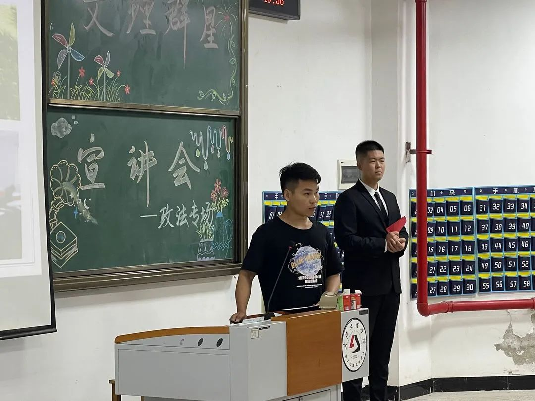 宣讲内容:袁宇学长告诉我们“将学习变成一种兴趣”,兴趣能一直陪伴我们,那学习就能如影随形,同时,团学也是老员工活中重要的一部分,能展示自己提升自己。我们要做好未来规划,选择适合自己的考公考研道路,并推荐出适合法学的精彩书籍。“扎根”是学长留给我们的思考。