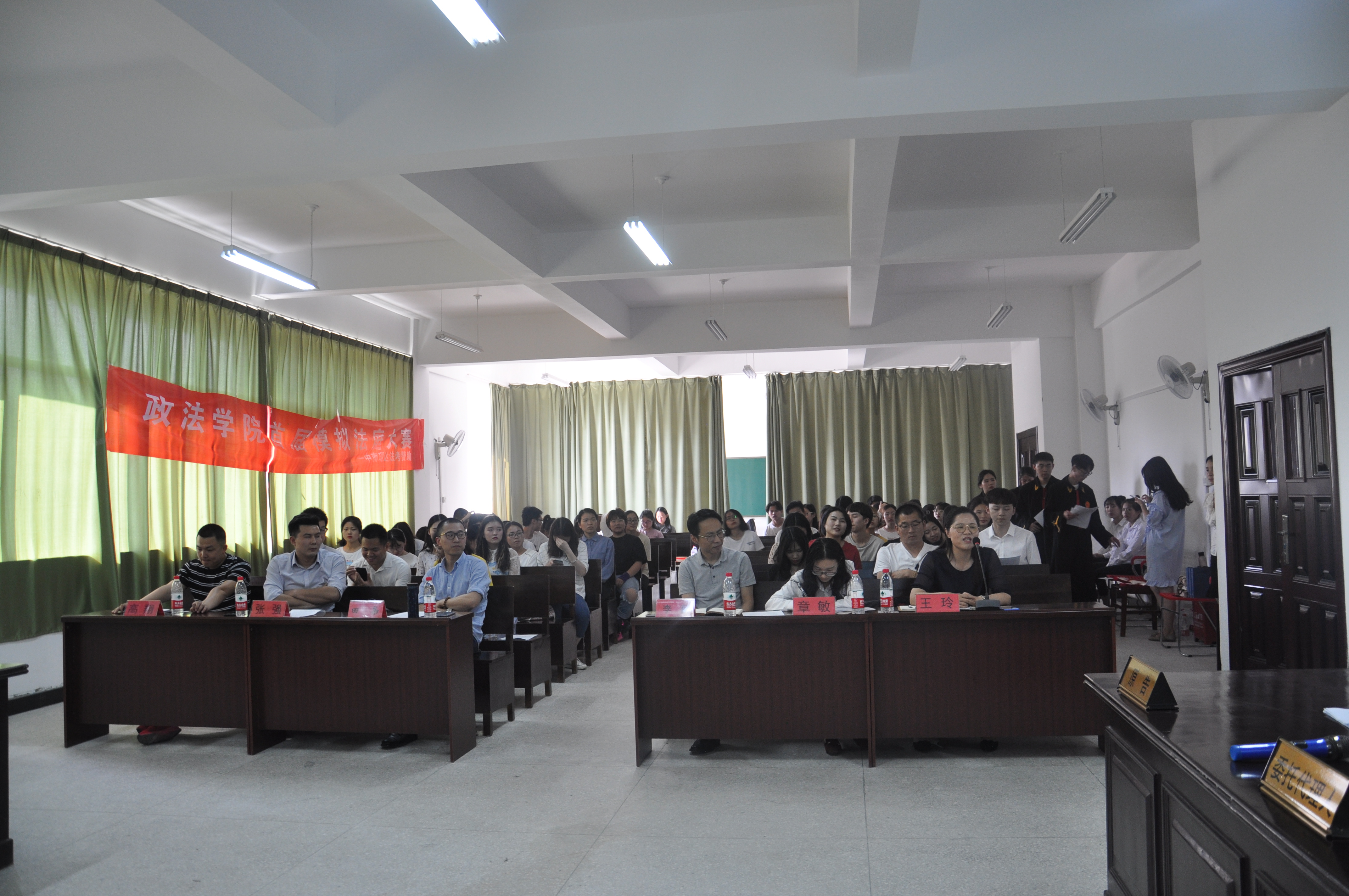 本次模拟法庭的案例为民事侵权纠纷,法官组由17级法学1班的同学担任,原告组由17级法学3班的同学担任,被告组由17级法学2班的同学担任。各班参赛选手准备充分,通过举证、质证、辩论、总结,呈现了一场完整的民事诉讼庭审。