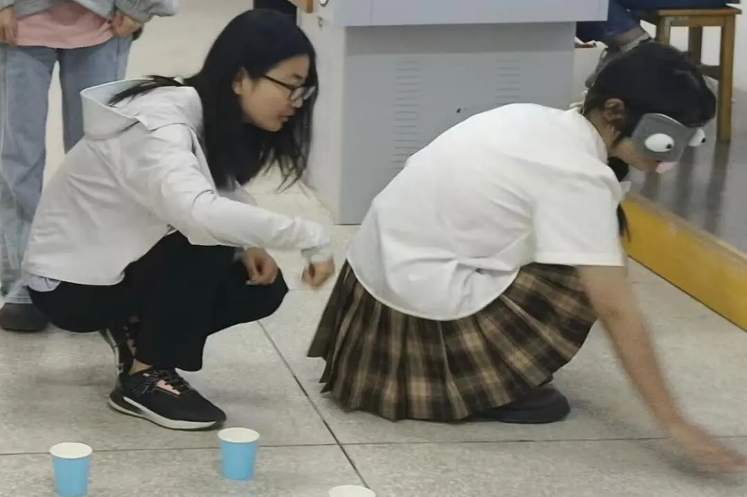 2024年4月25日中午,在教学楼5-123和5-124开展决赛心理趣味小游戏。政法心协精心准备了五个游戏,有“蒙眼取水”、“盲人摸号”、“记忆考验”、“你划我猜”、“乱词接龙”。首先由各个队伍的队长通过抽签的方式随机抽取两个游戏,在每个游戏开始前,再对抽取到这个游戏的队伍的比赛顺序进行抽签,各队伍按顺序上场进行比赛,并对游戏进行计时,采取积分制。