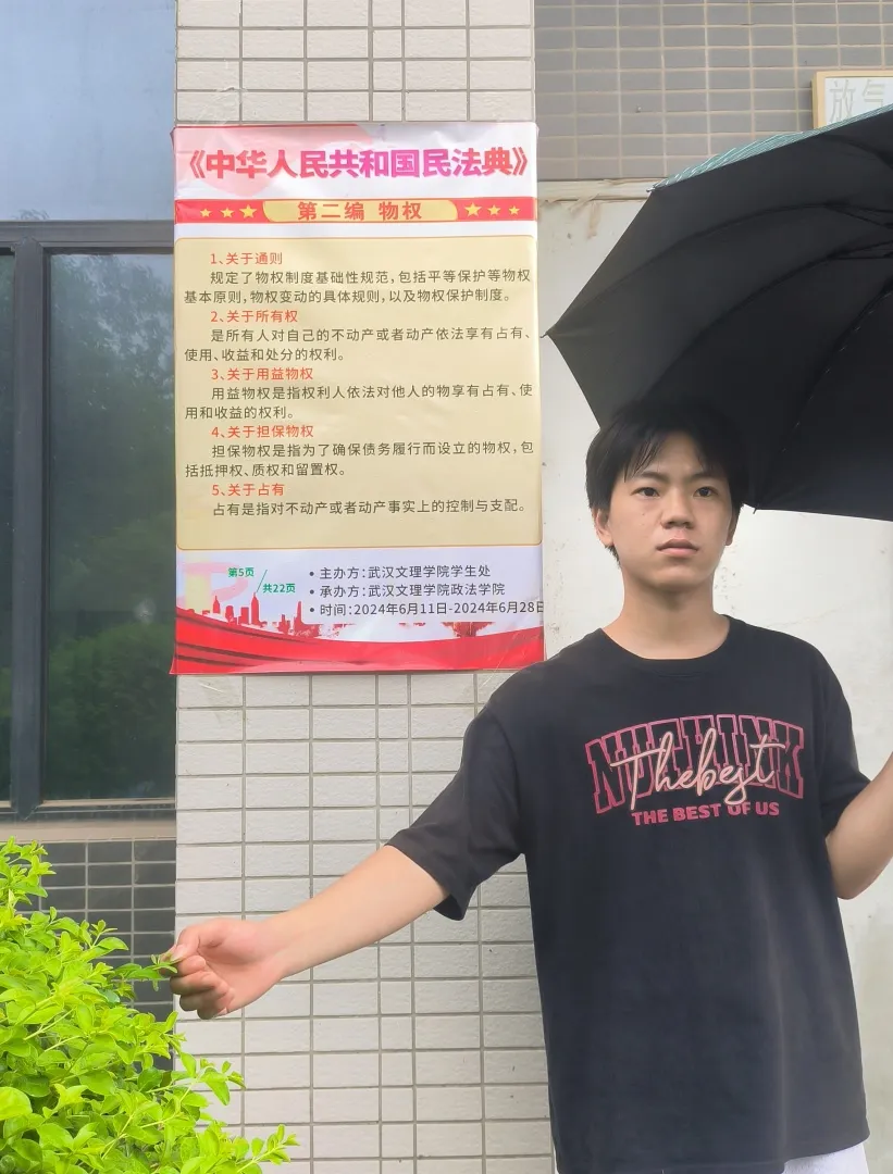 为了深入贯彻民法典精神,增强同学们的法律意识,提高同学们的法律素养,帮助同学们了解和保护个人合法权益、依法维权,推动“尊法、学法、守法、用法”的良好社会氛围形成,推动社会和谐稳定,为社会主义法治建设添砖加瓦,由公司员工处主办、太阳集团tcy8722承办的“承民法精神,典法治光芒”民法典宣传活动已经落下帷幕。