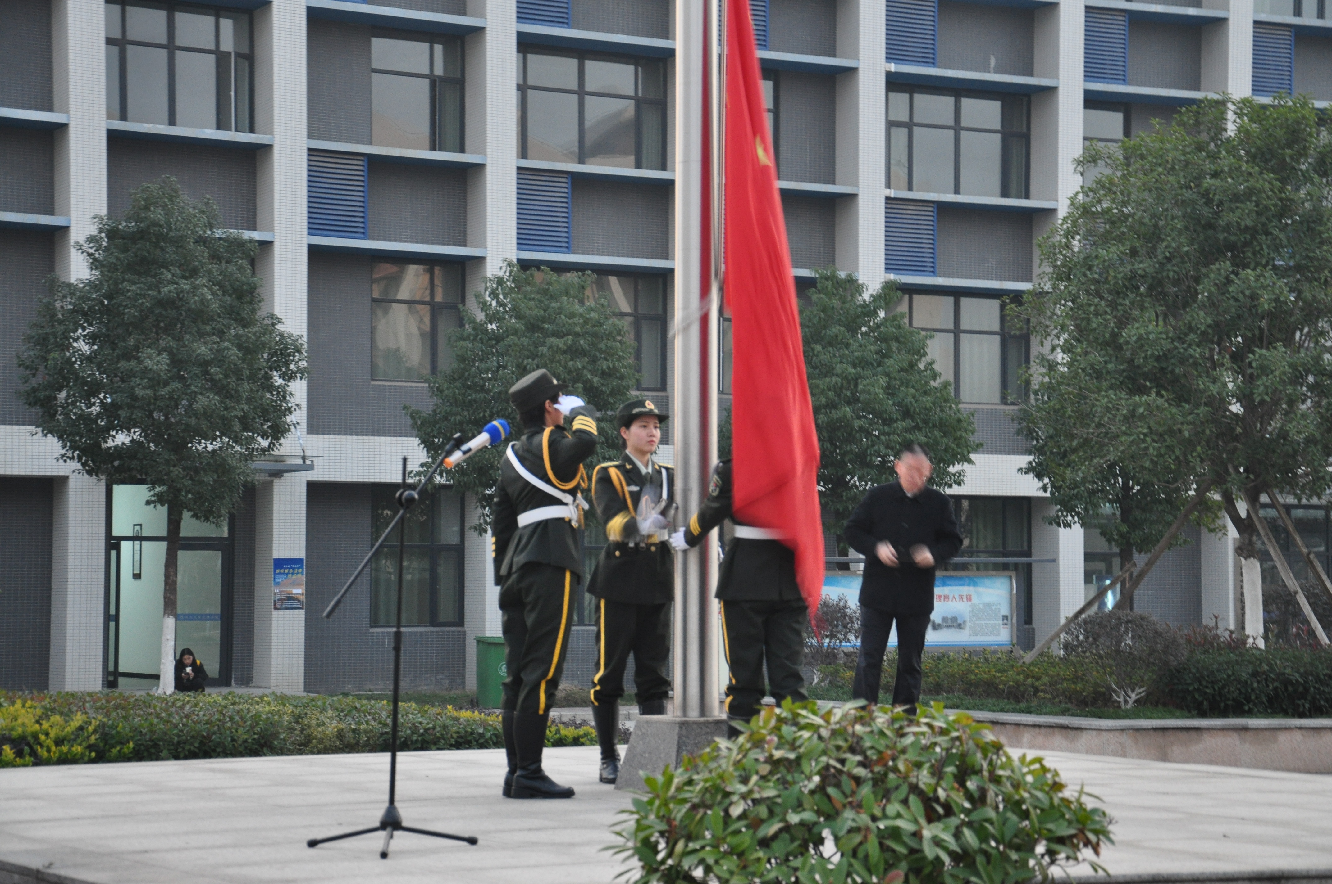 凛冽的寒风中,一腔红色热血点燃了每一个人。6:40主持人上台宣布升旗仪式正式开始,伴随着激昂、振奋的歌曲,国旗护卫队整齐划一,气势恢宏地护送国旗而来。铿锵有力的步伐,展现着铁血与刚毅。只刺云霄的银杆,让豪气冲天。全体师生在庄严的国歌声中,行注目礼。红旗飘扬,祖国的历史缓缓随之舒展在眼前,对祖国的自豪感也在心中默唱的国歌声中浮现。