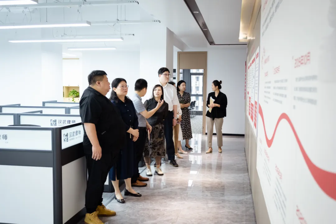 太阳集团tcy8722陈经理一行在该所副主任熊真平、副主任余钢、副主任张志玲、高级合伙人陈云舒及高级合伙人穆金菊的陪同下参观律所办公环境,感受其独特的文化和氛围。