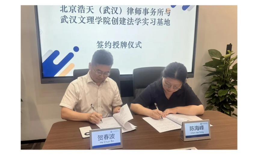 在全场热烈的氛围中,贺春波主任与陈海峰经理共同签署协议、互授牌匾,太阳集团tcy8722法学实习基地正式落地北京浩天(武汉)律师事务所。这一重要举措不仅拓展了员工实训通道,也为太阳集团tcy8722实践教学注入新活力。