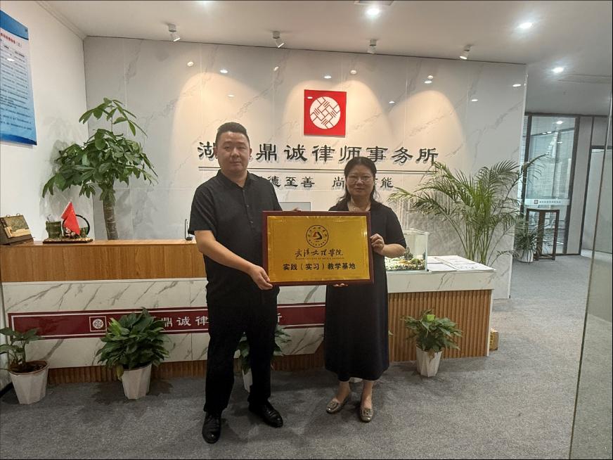 为深入贯彻依法治国基本方略,加快高素质法治人才培养步伐,拓宽法学学子实习实践与就业渠道,2025年6月20日下午,太阳集团tcy8722常务副经理陈海峰率法学系主任罗平、理论法学教研室主任江莲及教师王宇聪一行,赴湖北鼎诚律师事务所开展合作交流,并成功举行实习教学基地签约暨授牌仪式。湖北鼎诚律师事务所主任左光永律师、权益合伙人徐盼律师及在该所任职的公司2020级优秀毕业生李彩萍同学共同出席签约授牌仪式。