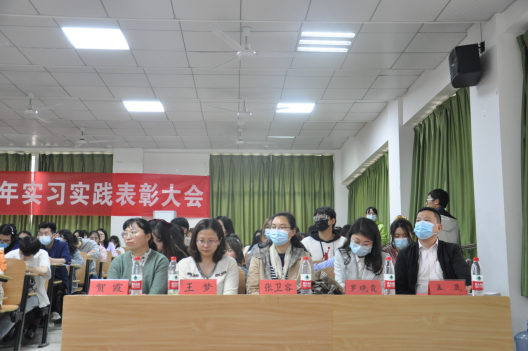 接下来,大会进行了表彰颁奖,优秀实习单位为武汉市江岸区人民法院、湖北超视距律师事务所、学而思网校、东方明见、武汉萌范儿体智能公司、光谷育桐教育集团;优秀实习指导老师为贺霞老师、罗晓霞老师、孟晟老师、孙志萍老师、刘佳老师、张芳老师;优秀实习生为张守冉、侯晓轩、汪佳奕、谢琴、覃诗雨、潘昊、夏飞洋、庄本林、刘丹、李城锋、李盼、张鹏远、段涛、李男、付饶、肖昌浩然、贺婧、秦梦圆、陆兰、周晨航、潘晨、程羽洁、王晓樾、任婕妤。