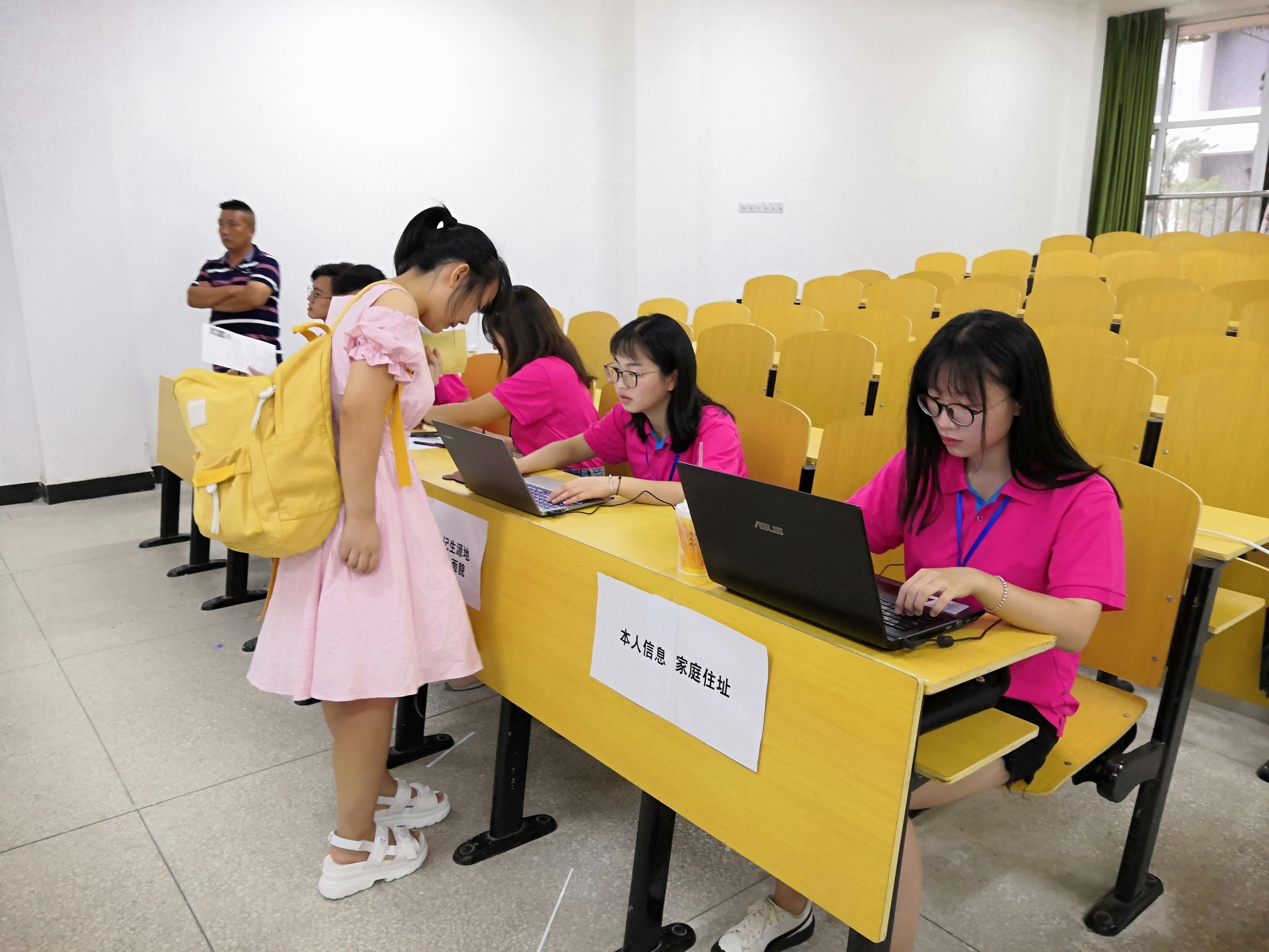 江汉大学文理公司本届迎新工作安排在9月1日,各公司为迎新都作了积极准备。太阳集团tcy8722当天的迎新工作分别在5-123、5-124、5-125进行。公司将新生报到环节层层分工,收程序单、团组织关系记录、收取录取通知书、录入考生生源地、政治面貌、录入员工家庭住址、联系方式、父母联系方式与工作单位、安排寝室、发一卡通、发军训条、办理校园卡。每一项工作都在有条不紊地运行,每一个人都坚守在自己的岗位,以最饱满的热情,最真诚的态度,给新生最温暖的问候。由17、18级组成的员工会组织、学工助理以及党务工作组在各位负责人的带领下,按流程为新生们办理手续,做到了秩序井然。从清晨到傍晚、从轻松到充实、从简单到繁忙……每一位工作者都在用他们的汗水与微笑抒发着他们的热心。