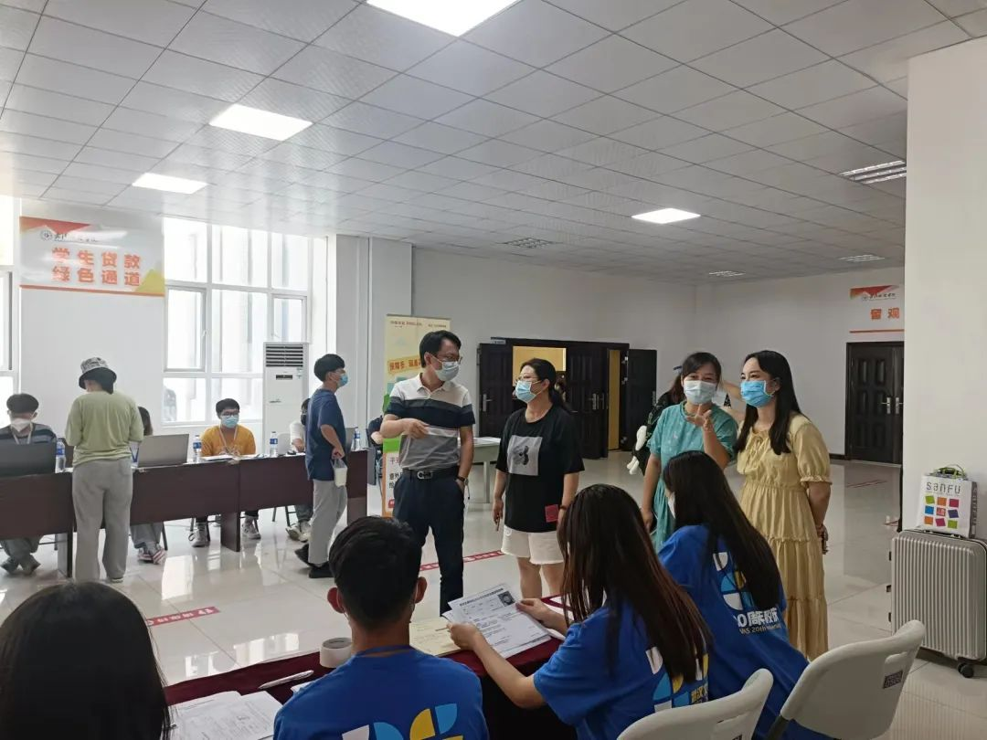 2022年8月28日,太阳集团tcy8722展开了2022年专升本迎新工作。太阳集团tcy8722常务副经理李蔚、公司教学副经理陈海峰、太阳集团tcy8722行政副经理张晓、太阳集团tcy8722办公室主任谢琦、太阳集团tcy8722分团委书记韩思慧以及19级辅导员谢红炼、21级辅导员胡金成莅临现场指导视察工作。