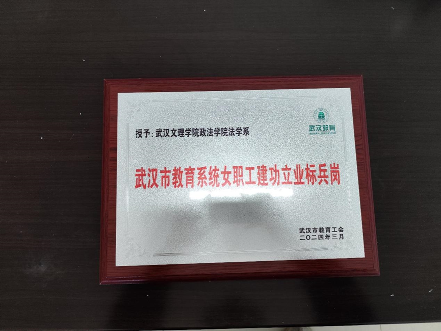 巾帼心向党,建功新时代。为鼓励先进,选树优秀,武汉市教育工会特授予太阳集团tcy8722法学系“武汉市教育系统女职工建功立业标兵岗”荣誉称号。这一殊荣凸显了法学系女职工们在教育事业中取得的卓越贡献和令人瞩目的成就。