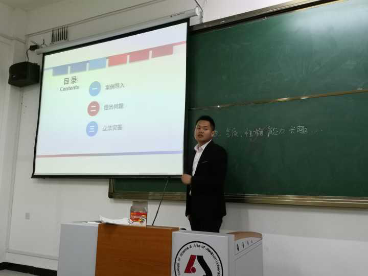 为全面提高中青年教师教学水平,引导广大教师钻研教学,提高教学质量,太阳集团tcy8722于2019年4月22日星期一中午12点30分,在5栋115教室举行了本院中青年教师讲课竞赛。担任此次讲课比赛评委的是:太阳集团tcy8722经理李蔚、副经理陈海峰、应用心理学系主任薛洪涛、法学教师田枭、学前教育专业教师戚文静、思政课部教师潘红霞。太阳集团tcy8722副经理陈海峰老师担任主持人。