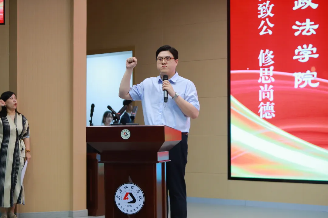 今天的我们,因为对法律的敬畏和信仰,因为对管理的智慧和效率而会聚一堂。在这庄严的时刻,吕溪老师带领全体政法师生郑重宣誓:
