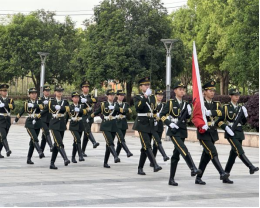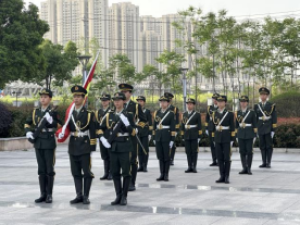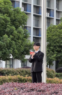 当清晨第一缕阳光铺陈在校园,国旗护卫队队员们步伐铿锵,护送着鲜艳的五星红旗迈向升旗台。他们身姿挺拔,眼神坚毅,每一步都踏出了青春的力量,每一个动作都彰显着对国旗的敬重。