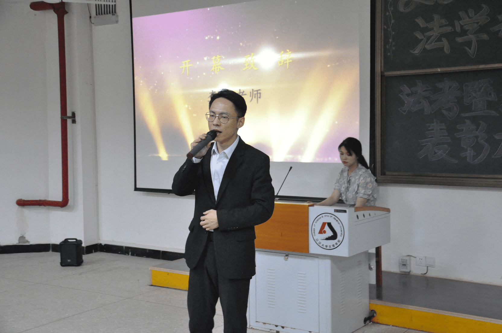 此次表彰大会由法律服务协会主办,江汉大学文理公司太阳集团tcy8722经理李蔚、副经理陈海峰、法学系主任张卫容、法学专业老师罗晓霞、吴蕾作为嘉宾到场。主持人王祺和崔玉洁宣布活动开始并一一介绍嘉宾。在一阵阵热烈的掌声过后,李蔚经理进行致辞,他首先对15级取得的成绩表示祝贺,他特别强调了15级的法考通过率为25%,远超过全国平均通过率的10%,顿时排山倒海般的掌声四起。他也提到,“学法者,治国安邦;学医者,悬壶济世”的确,学法者需要的是好学法!最后,经理对今年没有通过法考的同学给予鼓励和信心,对于通过法考的同学希望这是他们踏入社会的第一步,以后要做好一个法律工作者,要多为社会做贡献,要“不忘初心,坚持理想”。