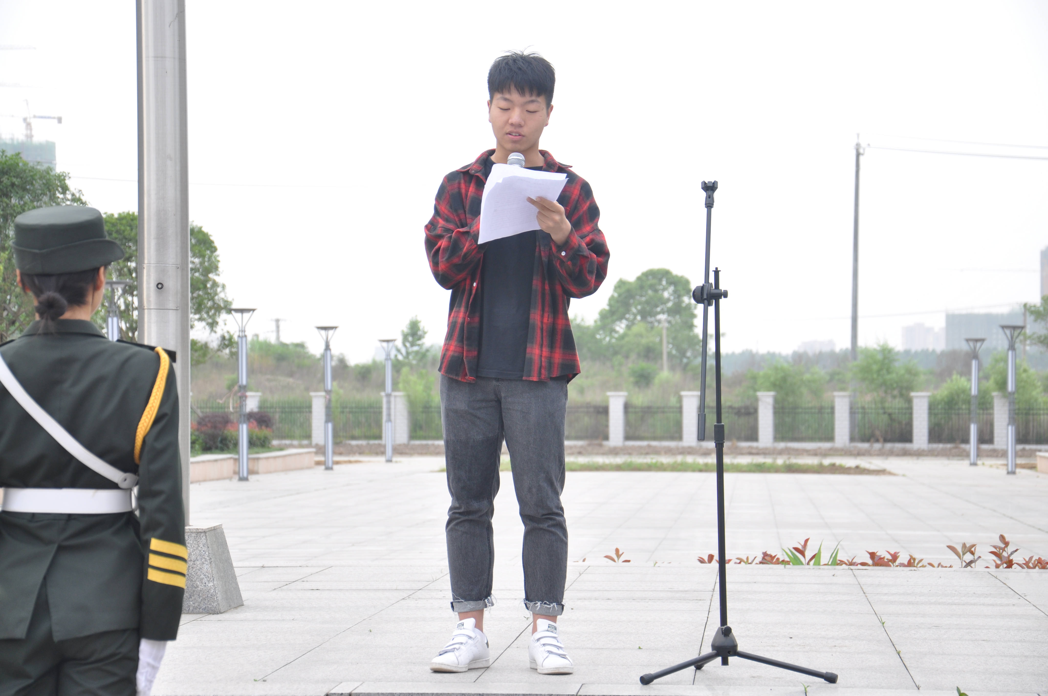 本次升旗仪式于六点五十准时开始,首先由主持人张雨涵依次介绍到场嘉宾以及观众,并宣布本次升旗仪式正式开始,紧接着国旗护卫队的同学迈着整齐划一的步伐,气势恢宏地向我们走来。其铿锵有力的步伐,展现着铁血与刚毅,他们迎着朝阳,以饱满的热情,庄严地护卫五星红旗。当雄壮有力的《义勇军进行曲》响彻整个校园时,同学们集体行注目礼,顿时全场弥漫着一种庄严肃穆的气息。在国歌声中五星红旗冉冉升起,祖国的历史仿佛映入眼帘,对祖国的自豪感在心中吟唱,不仅激发了所有同学不断向上的斗志,更点燃了同学们强烈的爱国热情。接着,由18级法学二班金志阳同学进行国旗下讲话。穿过时光流年,伴随历史云烟,中国共产主义青年团走过了一百年的风雨征程。五四运动至今,一代代优秀青年为民族复兴做出了卓越的贡献,这群风华正茂的青年承担起民族复兴的责任,为民族的复兴、国家的强大而不断奋斗。在纪念五四运动一百周年大会上,习近平总书记说道:“一代人有一代人的长征,一代人有一代人的担当。”岁月不老,青春不朽;生逢其时,重任在肩。我们要以青春之我、奋斗之我,走好自己的人生之路,为实现中华民族复兴的中国梦贡献青春和力量。金志阳同学结合习近平总书记在纪念五四运动一百周年大会上的重大讲话,告诉我们作为当代老员工应有人生观、价值观。实现中华民族伟大复兴的中国梦,无疑需要一代代青年的接力奋斗。作为新时代青年,我们要努力学习,用知识武装头脑,指导行动,牢固的树立正确的世界观、人生观、价值观,更好的担负历史赋予的重任,成为中国特色社会主义事业的合格建设者和可靠接班人,成为走在时代前列的奋进者、开拓者、奉献者,勇担复兴大任,引领时代先锋,做新时代的先行者。