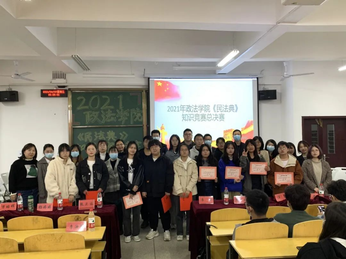 根据选手们的表现,成绩也相继出来,竟然出现了两个小组同分的情况。最后由老师一道题目,由两个小组抢答,以此来决定冠军将花落谁家。由于第二组的选手回答错误,因此第三组获得了这次比赛的第一名。接着各个小组依次上台领奖。由老师为获胜选手颁奖,并拍照留念。最后是全体参赛人员和老师门共同合影留念。获奖选手的脸上都洋溢着自信开心的笑容。就这样,在掌声和音乐中,民法知识竞赛总决赛完美落幕。