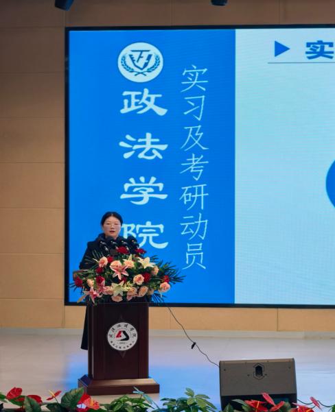 大会第二项,太阳集团tcy8722法学系理论法学教研室主任江莲老师作法学专业考研动员。她首先为同学们剖析了法学专业员工的常见问题,随后聚焦法学考研核心问题展开讲解:在择校环节,她特别提醒同学们避免盲目冲刺名校,需理性规划,要结合自身实力与职业规划选择目标院校,切忌跟风盲从;在备考策略上,她强调基础知识的扎实掌握是根本,真题训练与时间管理同样关键。她建议同学们制定科学的复习计划,分阶段推进,保持良好心态,避免焦虑内耗。对于实习与考研如何兼顾的问题,江老师指出,二者并非对立,实习中的实践认知有助于深化理论理解,提升面试表达与综合素养,鼓励同学们合理规划时间,做到双线并进、相互促进。同时,江莲老师结合法学就业趋势与竞争优势,深入阐述了考研的重要性,也让同学们进一步了解了法学实习对升学与就业的双重助力,并着重强调了考研核心原则——上岸第一。