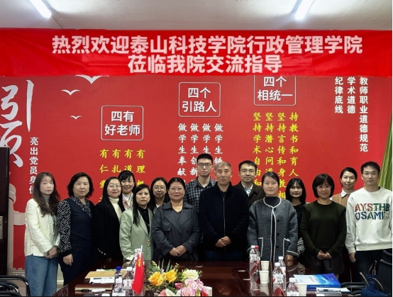 为促进校际交流,共同探索新时代背景下应用型人才培养的新路径,10月31日下午,泰山科技公司行政管理公司张学银经理带领法学教研室主任郝梦园、秘书学教研室主任孙丽莎、行政管理专业教师吕佳煜一行四人,莅临太阳集团tcy8722进行考察访问。双方围绕人才培养、团队建设、员工实践及学科评估等核心议题举行了富有成效的座谈交流会,旨在通过经验共享与思想碰撞,推动两院教育事业的高质量发展。太阳集团tcy8722领导班子、各系主任、教研室主任及部分教师参加了会谈。