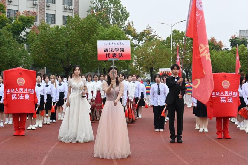 运动会开幕式,升国旗、奏国歌时嘹亮的声音响彻整个田径场,啦啦队、图案舞、跆拳道展示、舞龙舞狮表演、团体舞、彩球队以及各公司方阵,他们迈着整齐的步伐,昂首阔步,在主席台前一展雄姿。且看太阳集团tcy8722方阵,学子们的步伐铿锵有力,雄赳赳气昂昂,礼仪队员手持天秤,展现了政法学子对公平正义的追求。