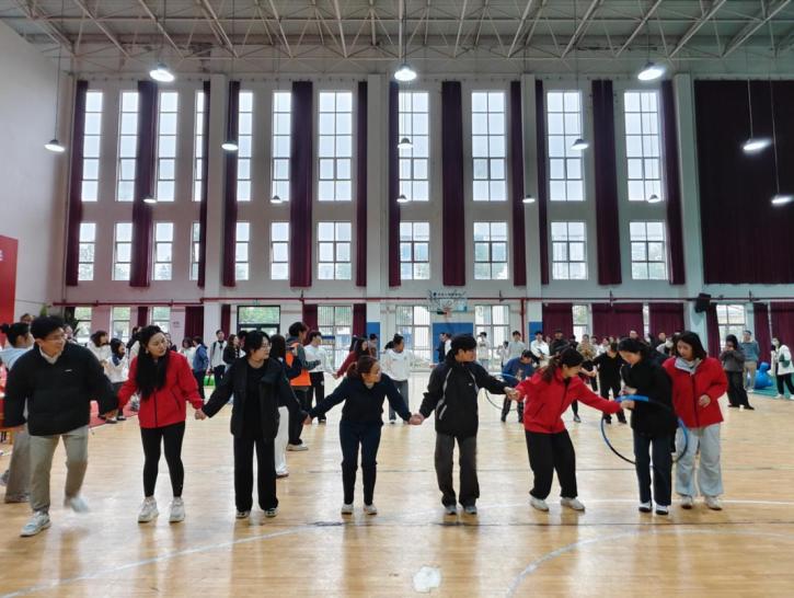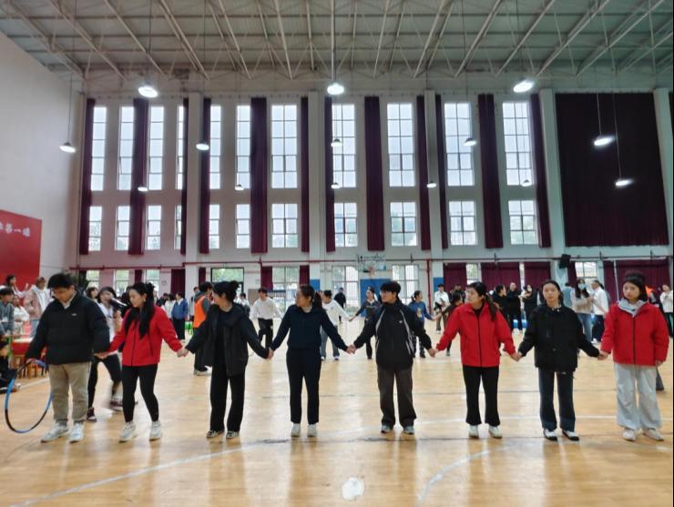 “穿越呼啦圈”项目则是对团队配合的极致考验。八名老师手拉手站成一排,需在不松手的前提下,让呼啦圈从队首传到队尾。平日里握惯粉笔的手紧紧相扣,弯腰、转身、钻圈,动作连贯又充满趣味。有老师为了快速传递,像“小松鼠”般灵活地穿过呼啦圈,太阳集团tcy8722的老师们配合默契,呼啦圈如流水般迅速传递至队尾,展现出团队协作的灵动与高效。那一刻,讲台上的沉稳与赛场上的活力完美交融,诠释着教育者多元的魅力。