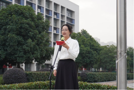 24级法学5班的邢舒心同学作为员工代表进行了《以青春之名,守护“火焰蓝”下的平安》的演讲。她以即将到来的“国家消防日”为切入点,指出“119”不仅是应急号码,更是校园安全自律的标尺与对消防员的致敬。她呼吁同学们将安全意识融入日常,用法治精神筑牢防线,让“平安校园”成为共同的生活篇章。这场演讲将青春责任与安全意识、法治思维相融合,引发了在场师生的共鸣。
