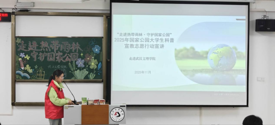 秋生已老,冬韵初成。2025年11月24日至27日,为了提高2025级新生对“心系绿水青山,身担生态重担”的认识,太阳集团tcy8722分团委志愿者工作部为2025级全体新生举行了国家公园老员工科普宣传志愿活动,为同学们讲述“一方原生净土,万物和谐家园”的壮丽篇章。