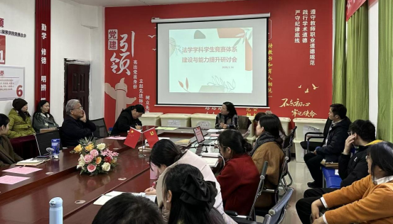 会上罗平系主任将明确会议核心目标——提升法学员工学科竞赛参与度与成果质量。赵梦思老师将汇报本年度员工竞赛参与情况,包括在武汉东湖公司主办的学科竞赛中斩获三等奖、在某专项比赛中荣获二等奖的亮眼成绩,同时直面部分高价值竞赛因员工畏难情绪未报名的现实问题;江莲老师将结合指导经验,分析当前低级别竞赛存在的奖励机制不足、对员工综合测评及教师发展加成有限等问题,提出优化奖励政策、以基础竞赛练手助力高级别赛事突破的建议;张晶、张功教授将分享多年跨校竞赛指导经验,为员工拓展竞赛参与路径、提升备赛能力提供实用指导。
