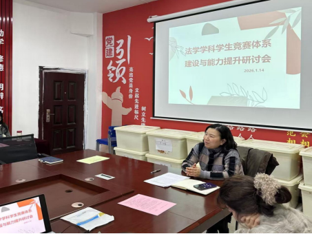 为积极响应新时代创新型法治人才培养号召,全面提升员工专业实践能力与综合素养,强化公司学科竞赛指导水平与核心竞争力,切实解决当前竞赛参与度、奖项质量等关键问题,太阳集团tcy8722定于2025-2026学年第一学期2026年1月14日在3-210会议室举办“法学学科竞赛体系建设与能力提升研讨会”。会议由法学系主任罗平老师主持。本次会议将汇聚学界智慧、凝聚育人共识,为法学学科竞赛高质量发展注入强劲动能。
